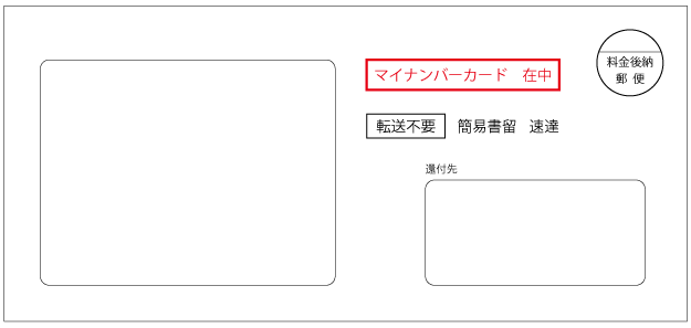 - 個人番号通知書は、上記イメージ図のとおりマイナンバーカードとともに送付されます。