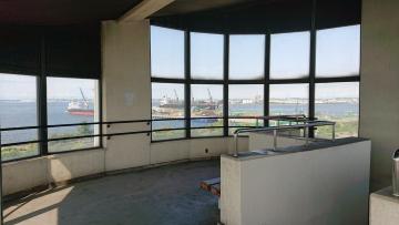 昭和61年竣工、4階建てとのこと。海沿いだけあって風が強いですが、昇っていくと…